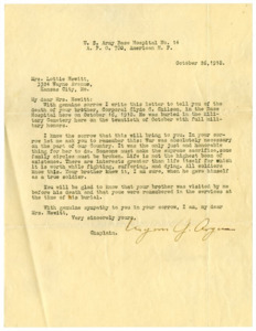 Byron G. Argus to Mrs. Lottie Hewitt, October 26, 1918, accession no. 1977.13.62, National WWI Museum and Memorial, Kansas City, MO, accessed February 22, 2025, https://collections.theworldwar.org/argus/final/Portal/Default.aspx?component=AAAS&record=3def8368-ab15-455e-894c-b28c294b8372.